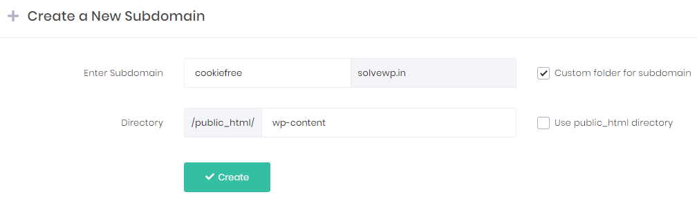 2. Point your new subdomain to the /wp-content directory of your WordPress installation. For cPanel users, you will need to update the document root field from public_html/cookie free to public_html/wp-content like the screenshot below.